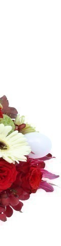 6 Red Roses, Red Mokkara Orchids, 3 White Gerbera, 5 Balloon Flowers, Gloriosa, 1 Red Candle